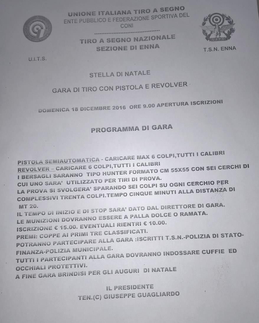 GARA DI TIRO CON PISTOLA E REVOLVER "STELLA DI NATALE" DOMENICA 18 DICEMBRE 2016