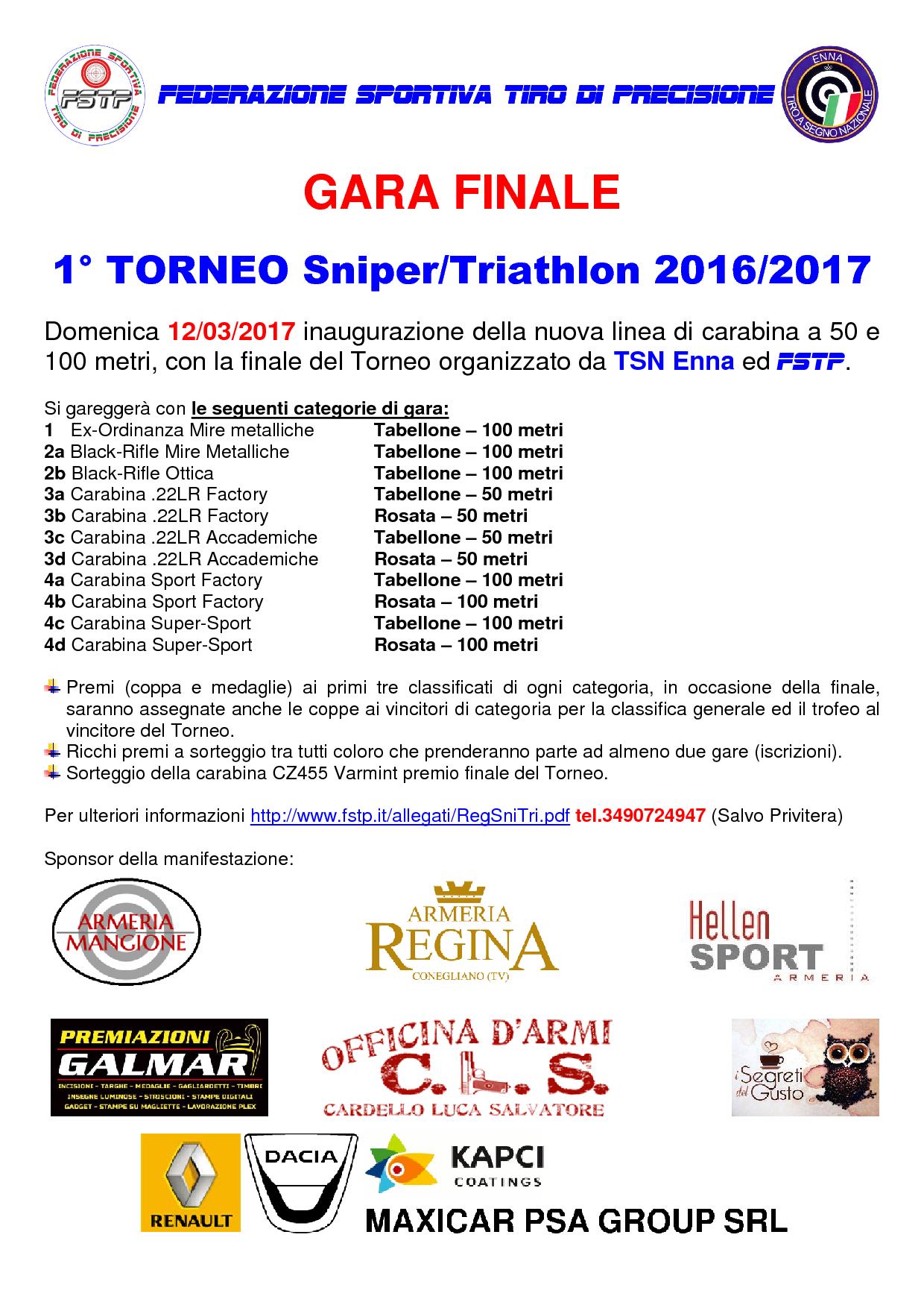 GARA FINALE I° TORNEO SNIPER/TRIATHLON 2016/2017